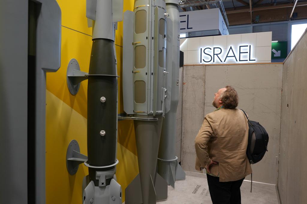 当地时间2025年6月16日,法国巴黎,巴黎航展以色列航空航天馆内,埃尔比特系统公司展区展示的空对地弹药。
