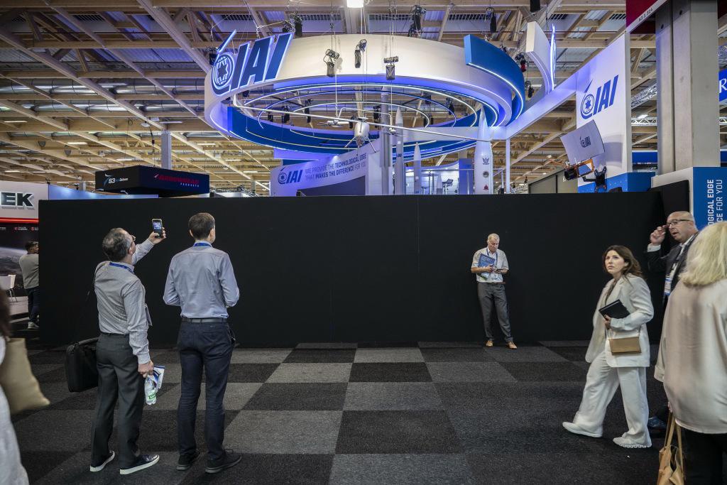被“关闭”的是以色列埃尔比特系统公司、拉斐尔公司、以色列飞机工业有限公司和尤维申公司的展台。另外三个没有展示硬件的以方企业小展台及以色列国防部展台依然正常开放。